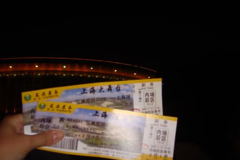 なので、今度は人のよさそうなダフ屋のおっさんを捕まえ、今度こそ入場してからお金を払う主流スタイルにし、30元安い650元でチケットを購入し、やっとこ嵐のコンサートにたどり着けました。