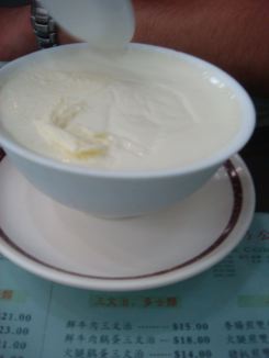 彼はプラス5元払うと、セットの飲み物が牛乳プリンに