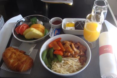 ビジネスの機内食。この間のANAのと比べるとかなり見劣りする