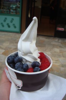 フルーツカップをつまんだり、ヨーグルトアイス?ジェラート?
