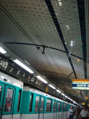 地下鉄のタイル張りの天井がかわいい事に!